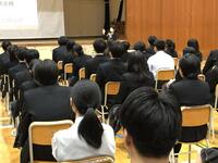 1年生を対象にKDDIの情報モラル講座「安心・安全なスマホ・ケイタイライフのために」を実施しました。講師はKDDIの方にお願いし、代表的なトラブル・ルールについて動画に講話を交えてわかりやすく生徒達に伝えていただきました。生徒達も人ごとと思わず、熱心に耳を傾けていました。